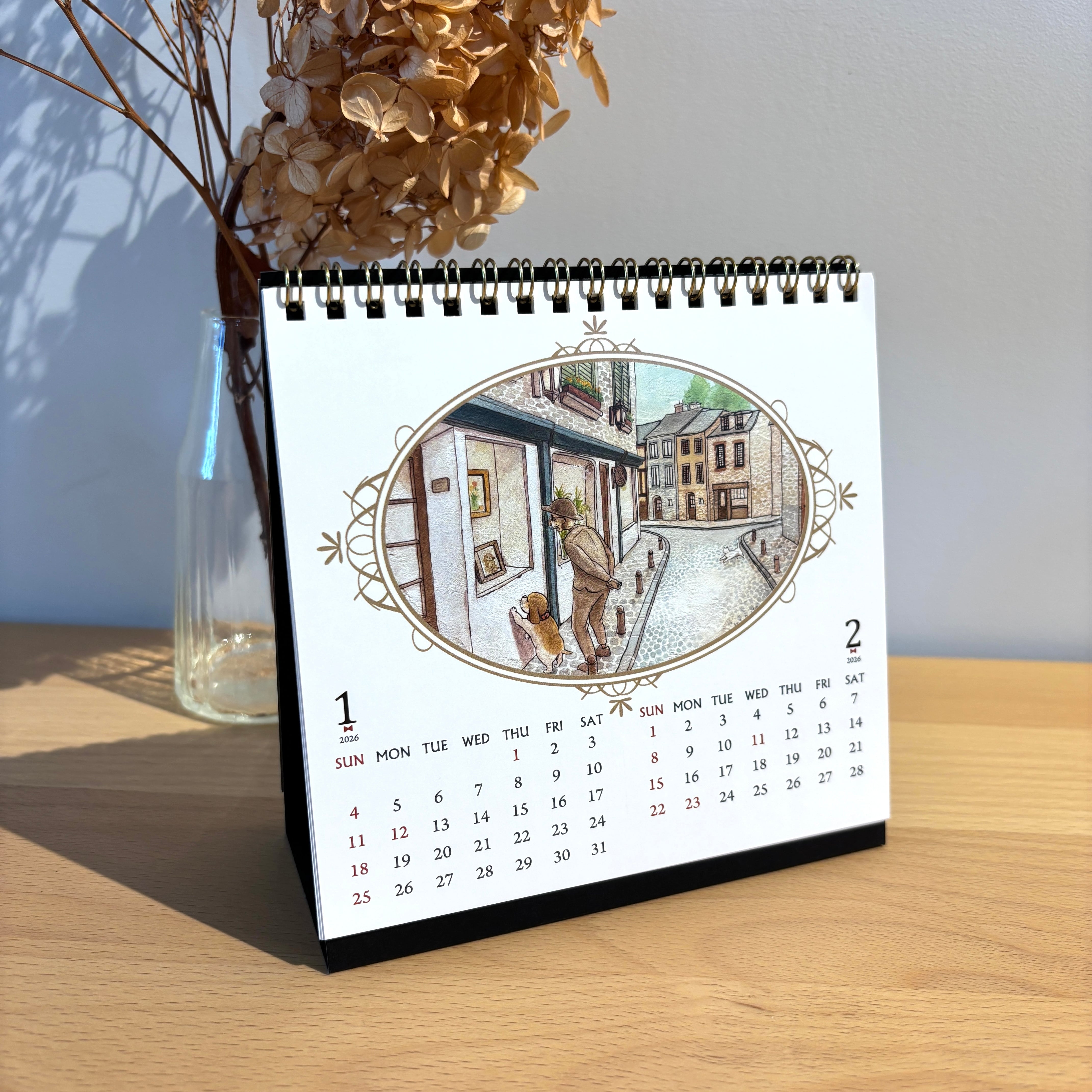 アルノーじいさんと愛犬パタプーフと猫のレミのほんわか日常をカレンダーにしました。